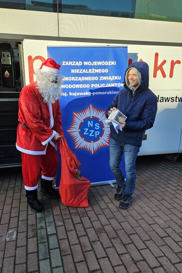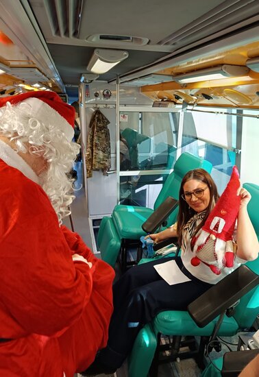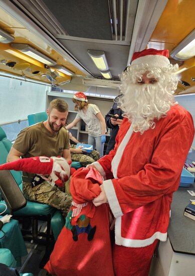 Wczoraj (11.12.25), od samego rana, na placu przy ulicy Poniatowskiego, na śmiałków, chcących podzielić się z innymi tym co najcenniejsze - krwią, czekał wyjątkowy gość – Mikołaj, który witał każdego z uśmiechem i wręczał świąteczne upominki. Ten drobny gest sprawił, że na twarzach wielu osób pojawiło się wzruszenie, a sama akcja nabrała niezwykle ciepłego, rodzinnego charakteru, przypominając, co w tym przedświątecznym okresie jest najważniejsze – czynienie dobra.