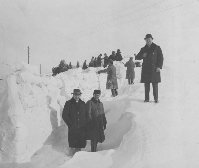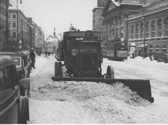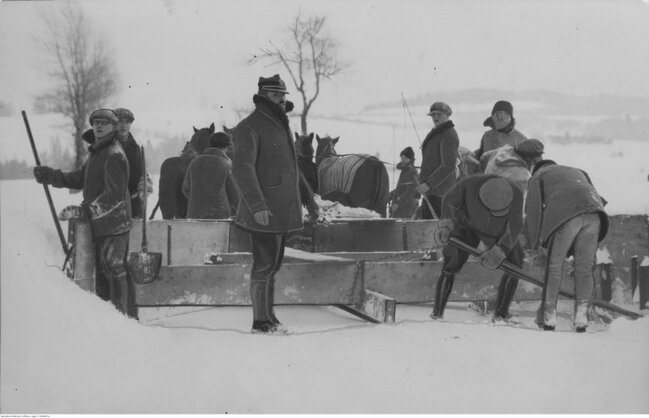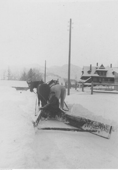- Do odśnieżania zasypanych traktów stosowano pługi ciągnione przez konie, a śnieg usuwano ręcznie przy pomocy odgarniaczy i łopat