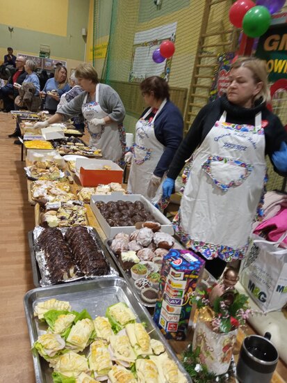 Tegoroczne hasło brzmiało; „Zdrowe brzuszki naszych dzieci”, czyli leczenie chorób przewodu pokarmowego u dzieci. Kolejny rok i tradycyjnie zagrała Gminna Rada Kobiet w Dobrczu. Na naszym kuchenno-kawiarnianym stole królowały przeróżne wypieki moich wspaniałych Pań. Pyszności upiekły KGW: Stronno, „Wudzynianki” z Wudzyna, Sienno, Dobrcz, Trzeciewiec, Trzęsacz, Trzebień, Kusowo, „Zalesianka” z Zalesia, Piekarnia „Mizar”, Sołectwo Borówno oraz osoby indywidualne. Do tego można było wypić gorąca kawę, herbatę, były soki dla dzieci, zakąsić chlebem ze smalcem lub zjeść strażacką grochówkę, którą szczerze i obficie serwowała z dużej chochli Mirka. Przy „słodkiej jadłodajni”, klientów nie brakowało. Szczególnie dzieci. Ciasta konsumowano na miejscu, ale też „łasuchy”, brały zapasy do domu, zasilając naszą puszkę. Ostatecznie po podliczeniu kawiarnianej puszki uzbierała się kwota 2 421,61 zł. Więcej niż w roku 2025. Wszystkim Paniom bardzo dziękuję w imieniu „chorych brzuszków”, za spontaniczne zaangażowanie. To pokazuje że, konsekwentne działania mają na końcu wspaniały efekt w postaci nowoczesnego sprzętu medycznego.