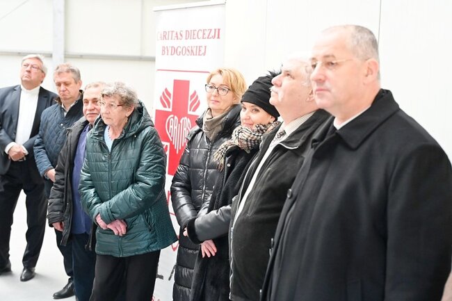 Głównym wykonawcą magazynu została Firma Bydgosta, reprezentowana podczas otwarcia przez prezesa i współpracowników. – Z serca dziękuję kochani wszystkim, którzy jesteście – dodał ks. prałat Wojciech Przybyła, kierując słowa m.in. do wykonawców, projektantów, wójta oraz przedstawiciela wojewody kujawsko-pomorskiego. – Każdego dnia do naszych drzwi, zarówno od strony ulicy Grodzkiej w Bydgoszczy, jak i od podwórza, gdzie działa Centrum Pomocy Migrantom – ustawiają się kolejki Polaków oraz obywateli w większości z Ukrainy. Z tych produktów karmione są osoby, które odwiedzają naszą łaźnię, ambulatorium w „Betlejem” przy ulicy Drukarskiej, otrzymując tam ciepły posiłek. Jesteśmy dumni z tego, że możemy mieć takie miejsca – dodał dyrektor Caritas Diecezji Bydgoskiej. – Jak bardzo jest nam potrzebny ten obiekt, pokazuje historia. Raptem trzy lata temu został otwarty pierwszy magazyn. Jak wiele jest osób potrzebujących oraz oczekujących tej pomocy, świadczą zapełnione pułki – podsumował wójt gminy Osielsko, Janusz Jedliński.
