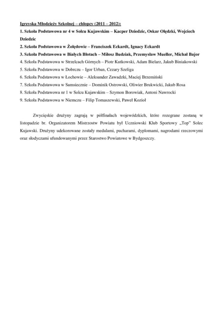 SP nr 4 w Solcu Kujawskim – Igrzyska Dzieci (chłopcy) oraz Igrzyska Młodzieży Szkolnej (chłopcy)