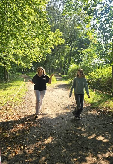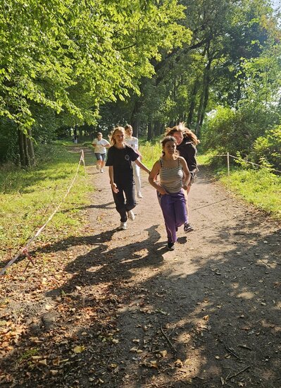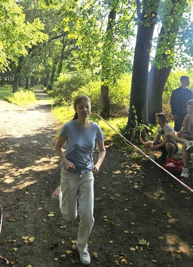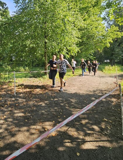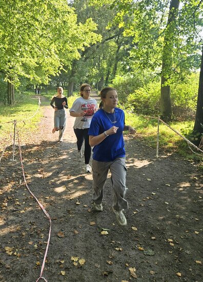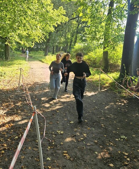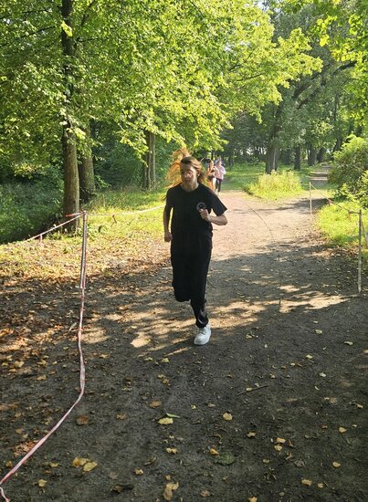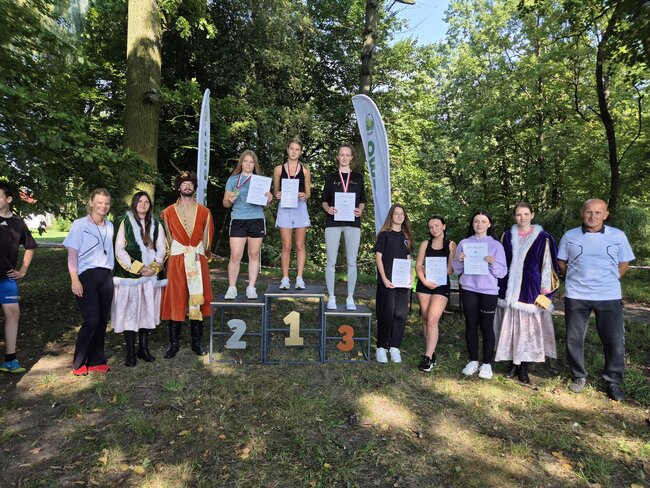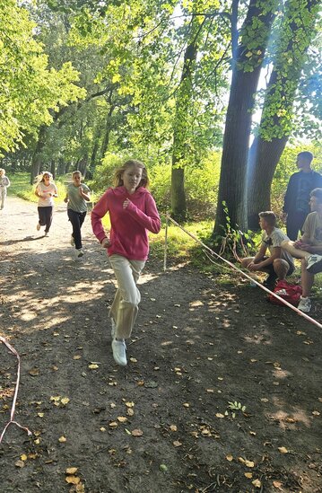 Przy pięknej pogodzie w przyszkolnym parku odbyły się biegi przełajowe o# Mistrzostwo ZSA-E w Karolewie. Podium dziewcząt to powtórka zawodów sprzed roku.
