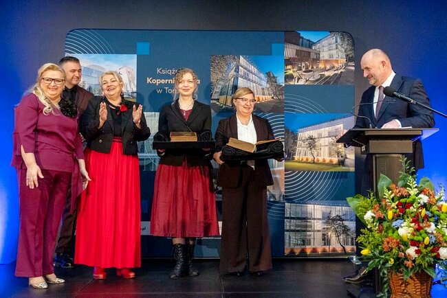 – To nowe skrzydło biblioteki jest mostem między przeszłością a przyszłością, miejscem na miarę XXI wieku. To przestrzeń prawdziwie wspólna i dostępna. Nasza Książnica nie zamyka się w bibliotecznej ciszy, ale współtworzy otwartą i inkluzywną regionalną przestrzeń kultury – mówił podczas uroczystego spotkania w Książnicy Kopernikańskiej marszałek Piotr Całbecki. – Niech to wspaniałe miejsce dobrze służy mieszkańcom, niech pozostaje miejscem otwartym i dostępnym, gdzie można przyjść po wiedzę i inspirację, ale też po chwilę wytchnienia; miejscem, w którym można usiąść z książką, spotkać się z drugim człowiekiem, porozmawiać, pomyśleć, zrelaksować się. Niech będzie przestrzenią dialogu, mądrej debaty i odważnego myślenia.