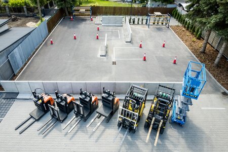 Na placu manewrowym ODEKA stoją prawdziwe maszyny: wózki widłowe, podesty, ładowarki i suwnice. Kursanci uczą się na urządzeniach zarejestrowanych w UDT, pod okiem doświadczonych instruktorów. Szkolenia odbywają się w realnych warunkach pracy, z naciskiem na bezpieczeństwo i precyzję obsługi.