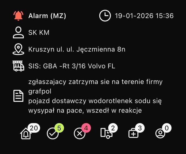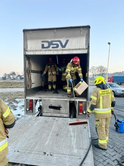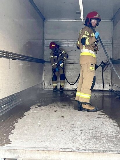 Po godzinie 15 doszło do rozsypania związku chemicznego. Na miejsce udały się dwa zastępy straży pożarnej: OSP Kruszyn i JRG nr 4 w Bydgoszczy. - W przestrzeni ładunkowej samochodu ciężarowego rozsypał się związek chemiczny wodorotlenku sodu, który wszedł w reakcję z wodą tworząc silnie żrący, bezbarwny ług sodowy. Po zneutralizowaniu związku oraz starannym wyczyszczeniu przestrzeni ładunkowej zakończyliśmy działania i wróciliśmy do jednostki - relacjonują strażacy z OSP Kruszyn.