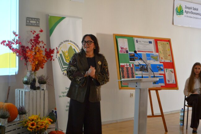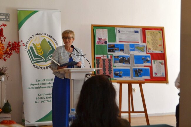 Wydarzenie zaszczycili swoją obecnością wyjątkowi goście, których zaangażowanie w rozwój edukacji i wspieranie młodych ludzi nadało konferencji szczególny wymiar. Wśród zaproszonych osób znalazła się pani Maria Strąk, dyrektor Powiatowego Centrum Zarządzania Oświatą, która w swoim wystąpieniu podkreśliła znaczenie inicjatyw międzynarodowych w kształtowaniu kompetencji zawodowych i społecznych młodzieży oraz w imieniu Starosty Bydgoskiego pana Piotra Kozłowskiego przeczytała podziękowania za innowacyjność w procesie kształcenia uczniów. List gratulacyjny przekazany został na ręce pana dyrektora Stanisława Busia oraz pani wicedyrektor Renaty Jurak-Muziewicz.