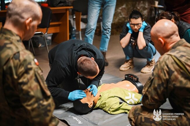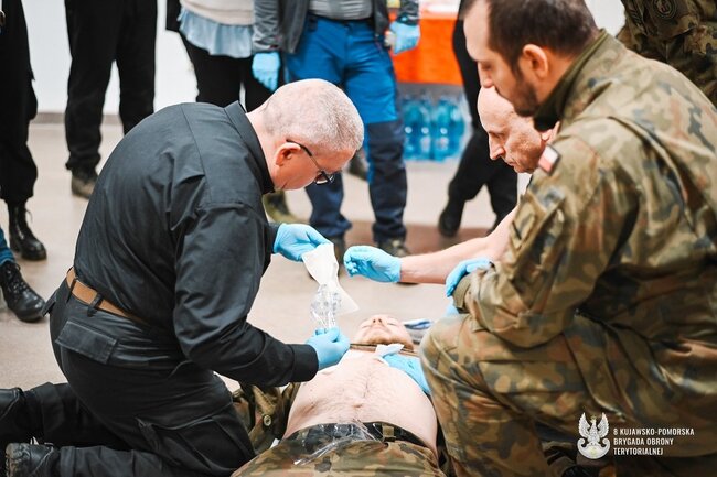 Pierwsze w #8 Kujawsko-Pomorskiej Brygady Obrony Terytorialnej (8 K-PBOT) zajęcia medyczne w ramach projektu wGotowości zakończone. Podczas szkolenia, które odbyło się 24.11.2025 r. uczestnicy zdobywali praktyczne umiejętności z zakresu ratownictwa medycznego i uczyli się działania w sytuacjach realnych zagrożeń.
